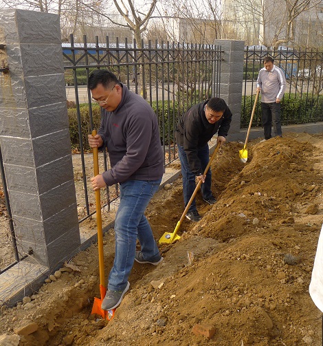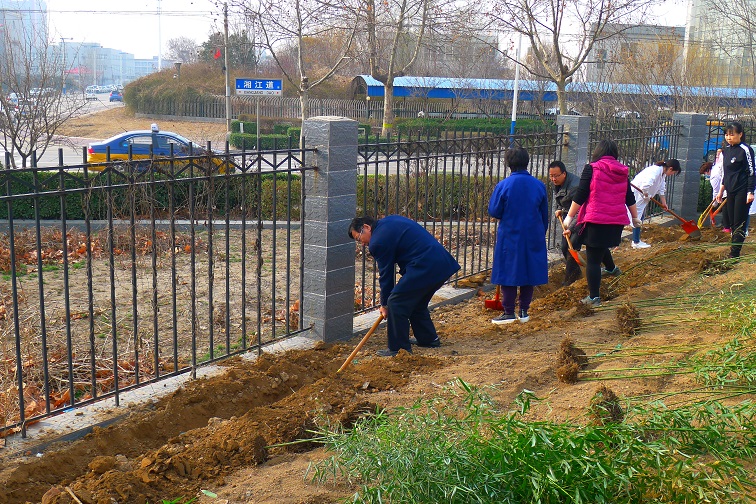 2018年3月23日,谷子所组织全体职工参加植树活动,大家一起动起来,种植竹子、紫薇等树木,美化办公区环境。