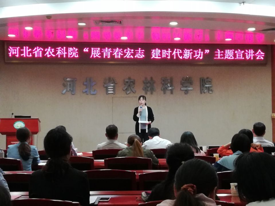 5月7日,为纪念“五四”运动100周年,院团委组织召开“展青春宏志 建时代新功”主题宣讲会,谷子所吕芃和白辉两位青年科研人员结合自身经历讲述感人故事,展现了当代农科人爱岗敬业、拼搏自强的奋斗精神,赢得与会代表阵阵掌声。