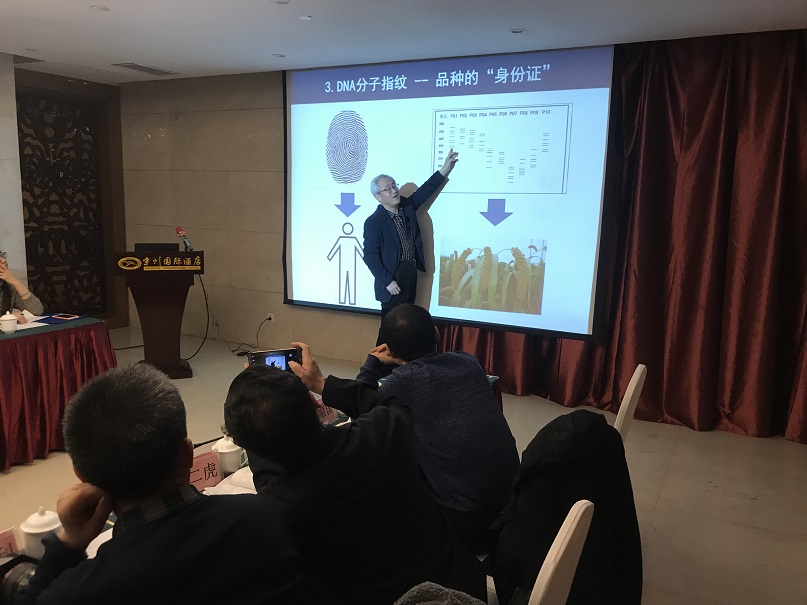 2018年12月15-16日,由全国农业技术推广服务中心主办,河北省农林科学院谷子研究所承办的“2018年谷子登记品种展示工作总结暨品质鉴评会”在石家庄顺利召开。来自北方九省市种子管理站、各地谷子品种展示点负责人等40余人参加会议。农业农村部种子管理局品种管理处副处长厉建萌、全国农业技术推广服务中心孙海燕处长、省农林科学院科技处岳增良处长出席了会议并做讲话。会议由孙海燕处长主持。
