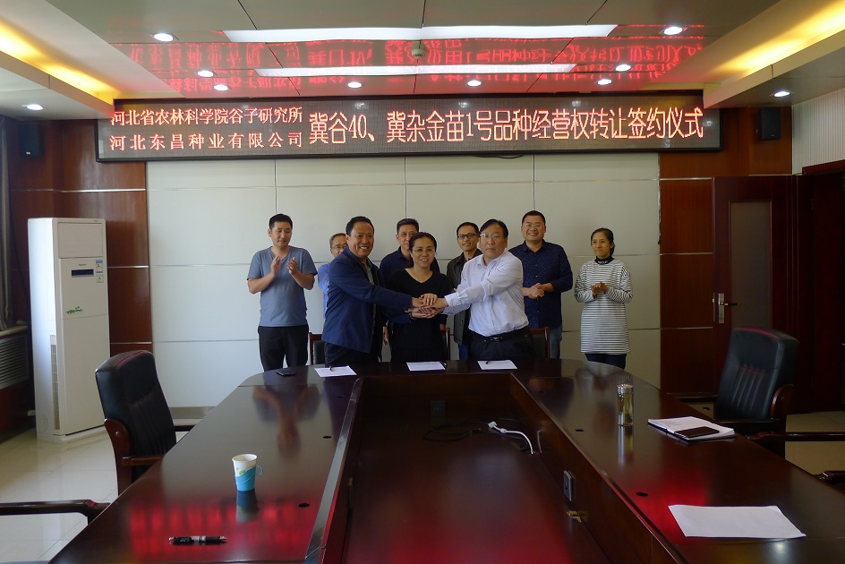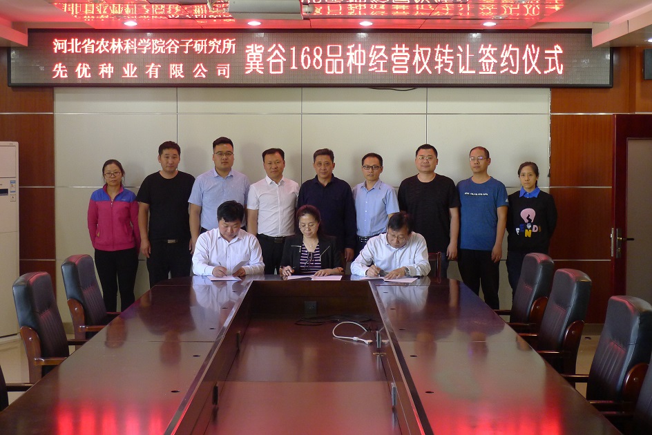 2019 年5月7日,谷子研究所与河北东昌种业有限公司签署冀谷40和冀杂金苗1号品种经营权转让协议。5月12日,与河北先优种业有限公司签署谷子新品种冀谷168品种经营权转让协议。谷子所成果转化再次取得新硕果。