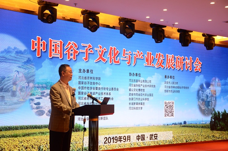 金秋季节,在举国上下喜迎中华人民共和国成立70周年,共同欢度第二个中国农民丰收节之际,2019年9月24日-25日,在中国传统作物谷子黍子的发源地之一—河北省武安市举办“中国谷子文化与产业发展研讨会”,会议的主题是“挖掘谷子文化,对接健康中国,提升谷子产业,助力乡村振兴”。省河北委原常委、纪委书记臧胜业,原河北省政协党组副书记、副主席赵文鹤等老领导,河北省农林科学院副院长孙世刚,邯郸市和武安市有关领导出席了会议。来自国家谷子高粱产业体系、河北省谷子产业技术创新战略联盟等从事谷子科研、生产、产业等有关专家、领导共计170余人参加了会议。省委决策咨询委员会副主任王慧军教授主持会议。